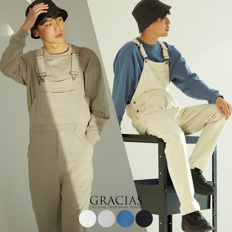 オーバーオール メンズ 裏毛 カットソー素材 サロペット オールインワン リンクコーデ おソロコーデ 黒 青 白 ジーンズ ジーパン デニムパンツ Gracias Graciasショッピングストア 通販 Yahoo ショッピング